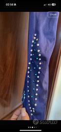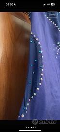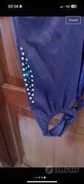 tuta elastica per pattinaggio artistico usata pochissimo con strass fatta a mano con dettagli in trasparenza e schiena scoperta e aggancio in fondo con strapp taglia xs da bambina