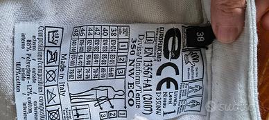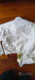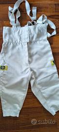 Tuta completa destra taglia 38 scherma Eurofencing pantaloni giacca Made in Italy e calzini alti. Con nome scritto sull'elastico, vedi foto. In regalo calzini alti 31/34. Pantaloni e giacca. Taglia 38 (120/124), veste abbastanza grande.