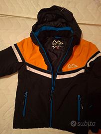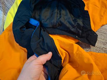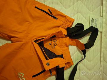 Tuta da sci usata ma in buono stato. Il cappuccio e le bretelle si possono staccare. Sulla manica sinistra c'è il taschino per lo skipass.