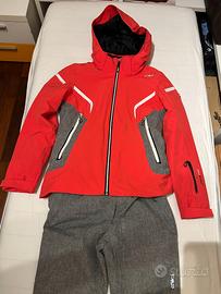 Vendo tuta da sci da donna, marca CMP, composta da pantaloni color grigio e Giacca rosso corallo con richiami grigio. Taglia XS