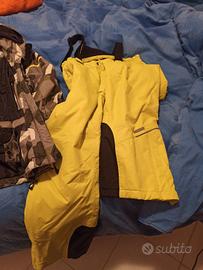 bellissima tuta sci cappuccio e bretelle stacc abili, protezione per scarponi, 3 tasche esterne, 1 interna, tasca skypass, tasca su gamba. taglia 46 large