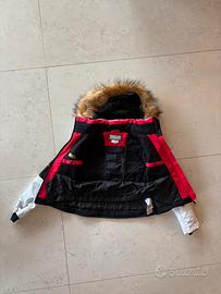 Giacca con cappuccio in pelliccia piu’ pantaloni (vita regolabile con velcro), taglia 10 anni, mai usata, bellissima!