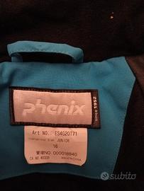 Marca Phenix, giacca azzurra, pantaloni verdi. Taglia 16 anni ma veste piccolo. Guanti