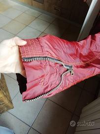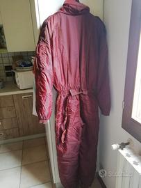 Tuta sci uomo tg. 46, vintage primi anni '90, color bordeaux, usata pochissimo e in ottimo stato, pulita, cerniere e bottoni a posto, lavabile a casa 30°, caldissima grazie al tessuto interno, tasche su maniche, petto, fianchi. Cintura e fondo gamba estensibile.
