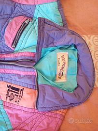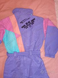 Vendo splendida tuta da sci vintage originale SUPERCOMP by elho, autentica anni ’90. Color viola, con inserti turchese, rosa e arancione, perfetto stile rétro ski anni Novanta. Capo originale d’epoca, sempre più ricercato nel mondo vintage e streetwear. Modello: tuta intera da sci Marca: SUPERCOMP by elho Periodo: anni ’90 Taglia: S (risulta comoda per una persona alta m 1,60 di 45 kg di peso) Condizioni: pari al nuovo Zip perfettamente funzionanti Colori brillanti, imbottitura perfetta Tasche con zip