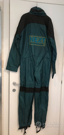 Tuta felpata per sport all'aria aperta di facile indossabilita' per due cerniere laterali che partono dalle caviglie fino allo scollo. Grande tasca centrale sul davanti e due laterali nei pantaloni. Misure: collo-cavallo pantaloni cm 86, pantaloni cm 100, spalle cm 55, maniche cm 63 e girovita cm 92.