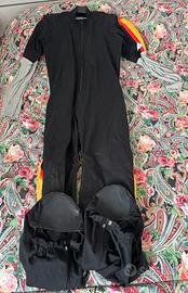 vendo due tute da lancio paracadutista di cui una con copri scarpe, per paracadutista slto 180cm e del peso di 80kg. Come da foto. 60€ trattabili.