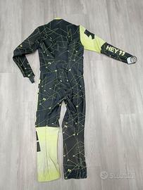 Tutina da gara sci della HEY, usata ma ben conservata, ha solo un piccolo taglietto vicino alla spalla come da foto , basta dargli due punti. Lavata e igienizzata. La taglia e' una S da adulto, va bene per una persona alta da 155 a 170 cm circa con una corporatura da atleta. Non ce ne sono uguali in giro, e quindi risulta un segnale distintivo per un atleta. La HEY forniva questa tutina ad un atleta che ora gareggia in WC, come testimonial.