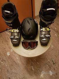 sci carving salomon 1.60 +attacchi salomon +tuta invernale Colmar 52+tuta estiva L+scarponi tecnica 43+caschetto +maschera +guanti +2 maglie termiche L+portasci+catene +tuta intera invernale e pantaloni invernali per riserva +borsone da sci euro 300 consegna a mano