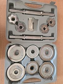 vendo valigia con pesi per tot 14 kg, due manubri, mai usata.