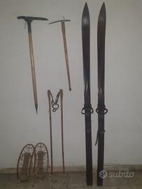 Varia Attrezzatura da montagna d'epoca . piccozza in legno vintage lunga circa 80 cm . .vendo a euro 59 le altre piccozze d'epoca in legno forgiata a mano da fabbro esperto, altezza (circa 110 cm./ e spessore legno ( sui 4 cm.) misure fuori dalla norma . vendo come da foto a euro 110 cadauna vecchie ciaspole in legno e corda a euro 69 Sci di legno d'epoca, completi di racchette ..non è più disponibile. vecchi ramponi , grappette in ferro battuto con attacchi in cuoio, credo fine 800 inizio 900. vendo a euro 39 zaino da montagna anni 50/60 in ottime condizioni , taglia piccola credo per ragazzo, vendo a euro 30 zaino da montagna anni 50/60 in ottime condizioni , taglia media ... NON PIÙ DISPONIBILE.. materiale d'epoca ottimo per collezionisti di cose d'epoca , attrezzatura alpina, cai , attrezzatura alpinismo , revocazioni storiche , rurale , arredo rustico arte povera, attrezzatura alpinismo d'epoca ottime per La Vintage Ski Race, Lo Ski Carousel Vintage Party , rievocazioni d'epoca, alpini, revocazione storiche , oggetti ottimi per arredo rustico , baita , negozio , taverna, no sci legno slitta attrezzatura d'epoca