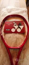 Ti presentiamo l'ottava versione della VCORE 100! Con questo aggiornamento del 2026, Yonex apporta modifiche incrementali al telaio, mantenendo la sensazione morbida,lo spin e la potenza per cui questo modello è famoso. Come gli altri modelli della linea VCORE, la forma isometrica della testa è stata modificata con una zona di contatto più ampia, ottenendo una maggiore finestra di spin insieme a una potenza più facile e un angolo di lancio più alto. Con un'inerzia intorno ai 320, la VCORE 100 offre una stabilità eccellente, pur garantendo una velocità sufficiente su tutto il campo per attaccare la rete e chiudere i punti. Per il 2026, Yonex ha riprogettato il telaio, conferendogli una forma più veloce e aerodinamica e allo stesso tempo rinforzando i punti chiave per una maggiore stabilità e potenza. Ulteriori aggiornamenti per il 2026 includono l'allargamento dei fori dei passacorde per migliorare l'attrito delle corde, nonché l'allungamento della scanalatura interna sulla punta per una maggiore flessibilità. Come nella versione precedente, questa racchetta integra una pellicola sottile ed elastica (Servo Filter) tra gli strati di 2 NAMD FlexForce Graphite, che consente alla racchetta di flettersi in modo ottimale assorbendo al contempo le vibrazioni indesiderate. Questa racchetta è inoltre dotata di una rete anti-vibrazioni, integrata nel manico per migliorare ulteriormente lo smorzamento. Ideale per i giocatori di livello intermedio e avanzato che cercano una racchetta morbida e potente con un potenziale di spin impressionante.
