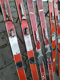 Vendo vecchi sci da ragazzi e bambini in legno con attacco e lamine avvitate. in buone condizioni per appendere o qualsiasi altra cosa o eventi primo da sinistra prezzo 30 euro secondo e terzo 20 euro