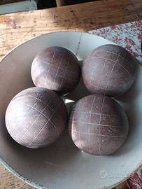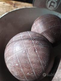 Vecchie bocce della Boule Fab. estremamente decorative per il giardino o per impreziosire e caratterizzare un angolo della casa. astuccio compromesso ma qualità e patina delle bocce perfette!