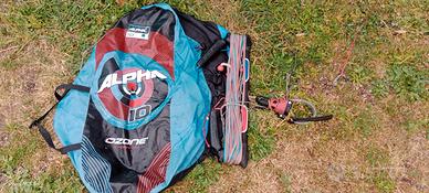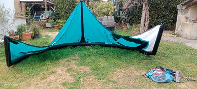 Vendo kite alpha v1 10 m. in ottime condizioni,nessuna riparazione, messi 2 pezzi di dacron adesivo per scongiurare lo sfregamento della valvola e dell'unico tubicino. Il kite è un ottimo all round, monostrut leggerissimo solo 600g. Ottimo per foil. E wave. Wind range 14 -23knt con tavola Surf o bidirezionale. Io peso 74kg. Completo di barra originale M ozone 23ml. Sostituito gomma cickenloop 6 mesi fà.