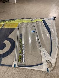 Vela con 3 camber acquistata insieme al suo albero mai armata in condizioni discrete i camber e zip tasca d’albero ok mentre andrebbe sostituita la chiusura nel boma ma non e’ influente sull’utilizzo dwlla vela … vendo perché ne ho una identica … posso spedire visibile a Santa Severa o Roma