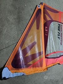 Vela da windsurf NP Fly 4.5 del 2019. Vela in buone condizioni. Segnalo piccolo taglio verticale sul fianco della tasca d'albero che però non crea problemi nell'uso e nel montaggio.