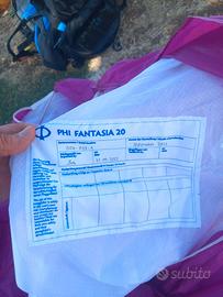 Vendo vela da parapendio per neofiti/principianti, adatta durante la scuola e per i primi anni di volo, marca PHI, modello Fantasia taglia 20 per peso in volo 65-85 kg, del 2021 con revisione valida fino a marzo 2026. La vela non viene più volata da un anno e mezzo.