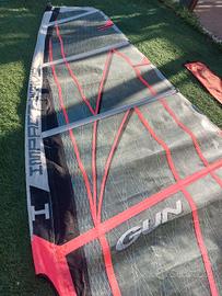 Marca Gun Sail Modello Impact Wawe 5 mq in buono stato, senza rotture, solo normali segni di usura. Ha il vario top. Completa di sacca. Stecche regolabili con chiave in dotazione fornita. Valuto scambio con vela piú piccola.
