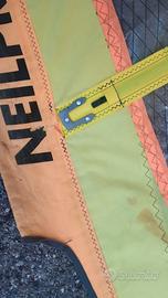 Vendo vela windsurf Neil Pryde, inclusa la sacca. Misure: Dimensione 4.7 Luff 425 Boom 164 La vela è usata ma in buone condizioni, salvo due difetti: - La sacca d'albero ha un leggero sfilaccio (foto 3) - La stecca bassa è priva di uno stopper (foto 5) La vela rimane utilizzabile e planabile, ma migliorerebbe di performance riparando lo stopper della stecca bassa. Vendo per passaggio a vele più avanzate. Canale di preferenza: Whatsapp