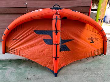Vendo vela wingfoil F-One Strike v2 di 4 metri quadrati, completa di leash e sacca, in buone condozioni generali. Quattro riparazioni sul canopie effettuate con nastro dacron spi, collaudate che non pregiudicano il suo utilizzo, il tessuto è comunque in ottime condozioni. Bladder centrale sostituito da poco. € 240 piu eventuale spedizione.