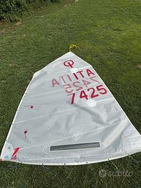 Vendo due vele optimist. Nelle prime 3 foto si puo vedere la vela da regata, una ONE, in ottime condizioni. Nelle altre foto si trova la vela invece da allenamneto, con un po di usura da utilizzo. Inoltre alle vele ce anche un boma, gli stroppini e le corrispettive sacche di contenimento.