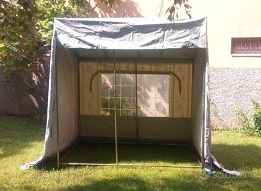 vendo veranda invernale per roulotte/camper. misure: larga 1.5 lunga 2 e altezza massima 3 metri. struttura in acciaio molto resistente, e telone in pvc molto grosso. usato un paio di volte. non spedisco
