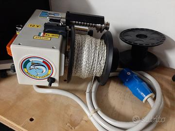 Vendo verricello molto versatile per bolentino, filaccioni, traina, affondatore, della Kristal Fishing, serie XL 801, completo di tre staffe e distanziale in alluminio trattato, per fissaggio su barca, supporto per portacanna, distributore filo in bobina, tre rocchetti intercambiabili in fiber-glass (capienza 800 metri di dacron 100 lbs.- uno imbobinato), canna con carrucola inox fissa lungh, 60 cm. per salpaggio lenza/travi/affondatore/ecc.. Usato pochissimo. Richiesta € 1.000,00