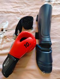 Vendo vestiario King boxing per ragazzino 10-11 anni usato pochissimo .....casco . Proteggi tibie . Guantoni . E fasce sotto guantone...