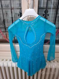 Vendo questo vestito azzurro con strass (120 pezzi) per pattinaggio artistico taglia 34. Ideale per una bambina di 115 cm e peso di 20 kg. È stato utilizzato 8 volte.