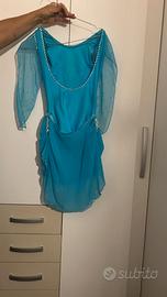 Abito gara da pattinaggio artistico formato da un body e due gonnelline applicabili al bisogno, cucito e strassato da una sarta,adatto per H 165/172cm.