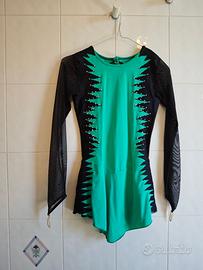 Vendo vestito sartoriale da pattinaggio da utilizzare come vestito da gara o da allenamento. Colore verde acqua e nero, con strass e maniche nere velate con brillantini dorati. Età - circa 14 anni; diagonale spalla-inguine: 66 cm; Lunghezza girovita: 50 cm. Richiesta: 50 euro più spese di spedizione (o consegna a mano a Pisa)