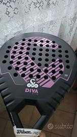 Racchetta da padel Vibora Diva Elite 3K 2.0, modello 2025. Condizioni quasi nuove. - Design con finitura in carbonio. - Dettagli in colore viola e rosa. Quasi nuova, usata pochissime volte. Over grip originale, coperto da wilson per non rovinare l'originale. Realizzata in carbonio 3k