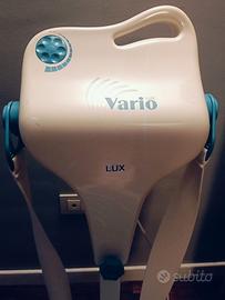Vibromassaggiatore a fasce VarioLux Super. È un vibromassaggiatore a fasce progettato per massaggi tonificanti e modellanti. Presenta 12 velocità per un'azione combinata. Include 6 fasce massaggianti intercambiabili. È indicato per combattere gli inestetismi della pelle come cellulite, ritenzione idrica e smagliature. Permette di eseguire massaggi su diverse parti del corpo, come glutei, cosce, fianchi e pancia. Completo di manuale di utilizzo. Ritiro a mano.
