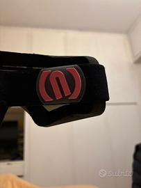Maschera da sci/snowboard con lente a specchio viola/blu, ampia visuale e fascia elastica regolabile.