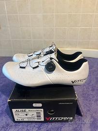 Vendo scarpe da strada n.42 modello Vittoria Alise’. Comprate a dicembre 2025 ed usate solo 4 volte. Scarpe praticamente nuove, presentano solo due piccole strusciatire come in foto. Ottimo affare