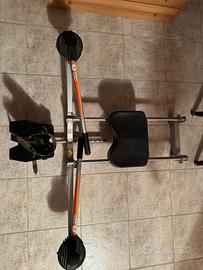 Vendo attrezzo fitness multifunzione, marcato Carnielli, (tipo vogatore con resistenza regolabile), ideale per allenarsi a casa (gambe, braccia e addome). Struttura solida con seduta scorrevole e poggiapiedi con cinturini. Resistenza regolabile sulle maniglie per adattare l’intensità. Funzionante ma con segni di usura, visibili in foto (normali per l’utilizzo nel tempo), ma utilizzabile senza problemi. Perfetto per chi cerca un attrezzo economico per allenarsi a casa. Prezzo trattabile.
