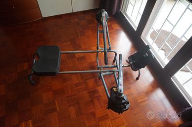 Vogatore con pompe a resistenza idraulica variabile e regolabile, che riproducono lo sforzo compiuto nel canottaggio, modellando pettorali, gambe, braccia e spalle.