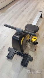 L'attrezzo presenta 8 livelli di regolazione dello sforzo, il display indica diverse informazioni tra cui tempo, n. vogate, calorie bruciate ecc