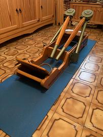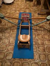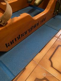 Vogatore Lamborghini in legno.Forza applicabile regolabile, cosi' la pedaliera a secondo dell'altezza del vogatore. Offre un'ottima impostazione di vogata, ed e' un valido approccio al cannottaggio. Quelle che vedete sulla pedaliera sono delle strisce antiscivolo applicate da me. Un angolo del vogatore come da foto e' leggermente rovinato ma assolutamente ininfluente nell'insieme.