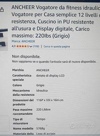 Vogatore idraulico 12 livelli. Ricevuto in regalo ma praticamente mai utilizzato. Comodo perché sta in piedi in verticale o comodamente sotto il letto. Le foto e le informazioni sono da amazon perchè le ho prese direttamente dall'ordine che era stato fatto. A chi è interessato mando anche le foto. Unica cosa non ha la scatola, è già montato