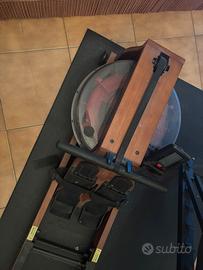 Vogatore pieghevole in legno come nuovo + panca e pesi