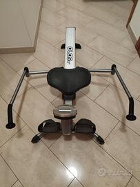La resistenza è affidata ad un pistone idraulico che grazie alla regolazione su livelli di intensità, permette di eseguire differenti esercizi a seconda della prestazione desiderata dall’utilizzatore. Il carrello con sedile ergonomico garantisce una comoda postura durante l’esercizio grazie anche ai pedali punta piedi con cinghietto ferma scarpa che permettono di mantenere sempre l’appoggio anche nelle fasi più intense dell’esercizio.
