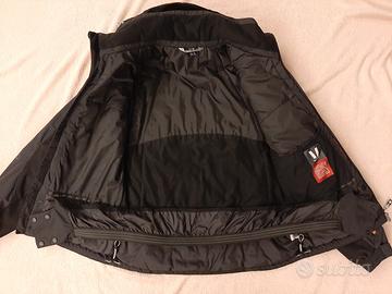 Molto calda. Con cappuccio regolabile, mezzi guanti incorporati. Tasca interna per panno occhiali. Chiusura antivento. Gonnellino antineve. Bordi e polsini regolabili con cordino elastico e velcri. Porta skipass su manica sinistra. 4 tasche con lampo. Salva mento. Colletto con fascia termica. Fascia termica lombare.