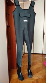 Vendo per errato acquisto (troppo grandi per me, come evidente in foto). Adatti ad una persona più alta di me (m. 1,67). Neoprene da 5 mm., molto confortevoli e caldi. Spalline con velcro regolabili. Misura stivaletti 42\43. Nuovi, mai usati.