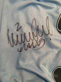maglia ufficiale e nuova del Manchester City stagione 2024/2025, modello Home, con nome e numero di Kyle Walker. La maglia è stata autografata personalmente dal giocatore come si vede nella foto .
