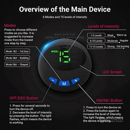 Esercizio Efficiente -- Il nostro stimolatore muscolare può rafforzare il tuo corpo in modo efficiente ovunque in qualsiasi momento. 6 modalità e 9 intensità sono dal basso livello al alto livello, adducendo sia alle persone chi sono nel periodo iniziale del esercizio ma anche alle persone chi sono nel periodo professionale! 23 minuti di utilizzo al giorno equivalgono a 2000M in esecuzione o 40 minuti di sit-up, risparmiando tempo ed energia per il bodybuilding.