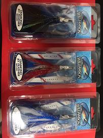 Velocitá di nuoto fino a 10 nodi. La testina jet provoca una scia di bolle durante il recupero. Il disegno a diamante aumenta i flash. Include due extra Sonic Strips con heavy-duty snap che durante il recupero aumentano effettivamente le vibrazioni sonore e producono una scia molto vistosa. Perfetta per insidiare tutti i predatori veloci in tutti i mari.