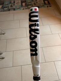 Vendo racchetta da padel Wilson bela lt 2.5, condizioni buone con normali segni di utilizzo che non ne compromettono il gioco, solo salti di vernici, non ci sono crepe. Protettore montato fin dal primo utilizzo e tenuta sempre in borsa termica. Per il resto ottima pala, vi troverete subito a vostro agio.