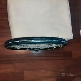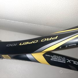 Racchetta da tennis in ottimo stato Manico 3 peso 299gr Testa racchetta 100 Profilo 26 Bilancuamento 320 Lubghezza 27 mm Schema corde 16x19 Potente, maneggevole e ben bilanciata, la Wilson Pro Open non lascia nulla al caso e si conferma la scelta ideale per i giocatori da fondo campo che sono alla ricerca di un attrezzo che spinga bene senza mai perdere il controllo della direzione e della profondità. Nuovo look raffinato, il profilo da 26 mm imprime molta potenza ed il piatto da 100 pollici esalta le rotazioni in TopSpin, il servizio esce potente e sicuro senza mai affaticare il braccio. Racchetta universale adatta sia per il giocatore amatoriale che per l'agonista. Offre il giusto mix tra potenza e spin.